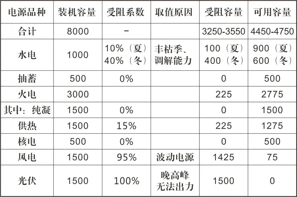 表1 某地(虛擬)裝機及可用容量,萬千瓦