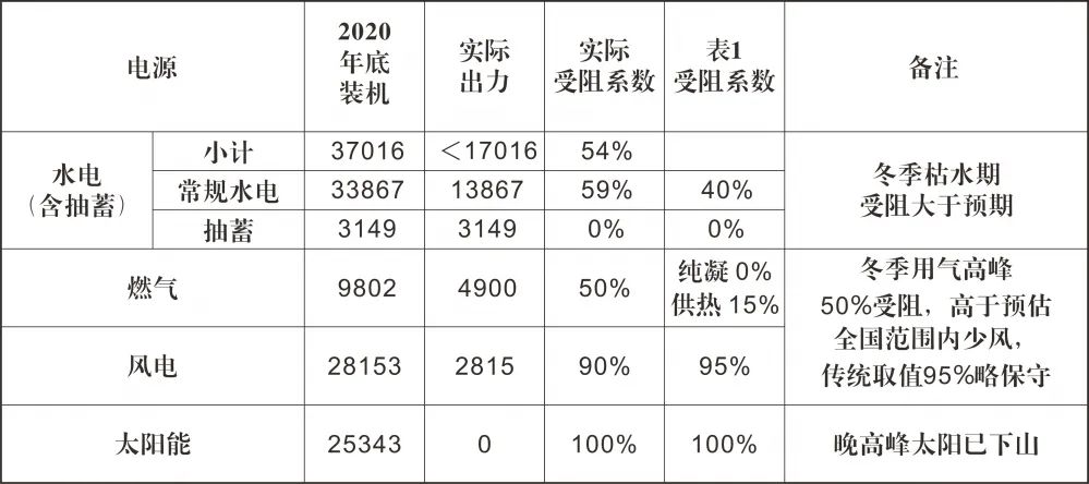 2021年1月7日晚高峰部分電源出力,萬千瓦