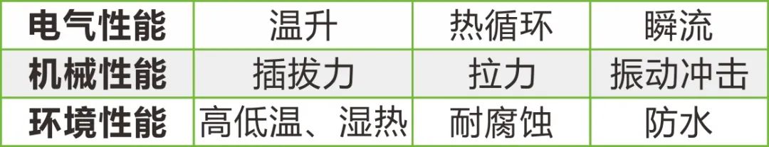 電氣性能考察的是電連接器正常連接后電參數是否滿足使用要求,用戶在選用電連接器時比較關注額定電流、耐電壓、接觸電阻、絕緣電阻、外殼電連續性等指標。