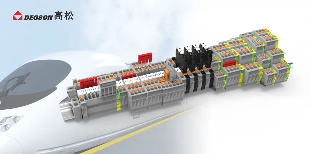 DEGSON高松順應軌道交通行業的發展趨勢,積極研發軌道交通行業連接器產品系列,各產品系列憑借其優秀性能應用于軌道交通領域的多種系統,其中導軌端子廣泛應用于各子系統的控制柜中。
