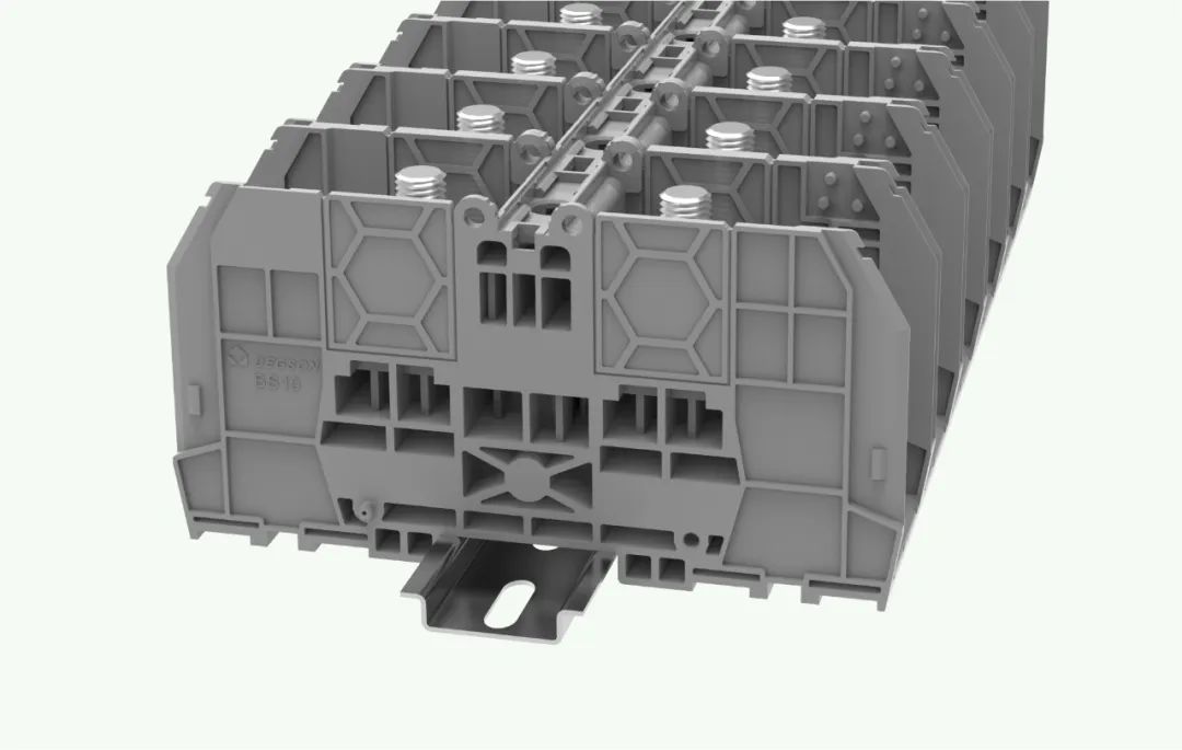 BS系列螺栓型端子,采用螺栓連接技術,接線牢固。內置碟形彈片,擁有良好的回復預警力。接線容量范圍廣,可接額定線徑2.5mm2到150mm2的導線。適用于機械、風電、軌交等行業的大線徑導線連接。