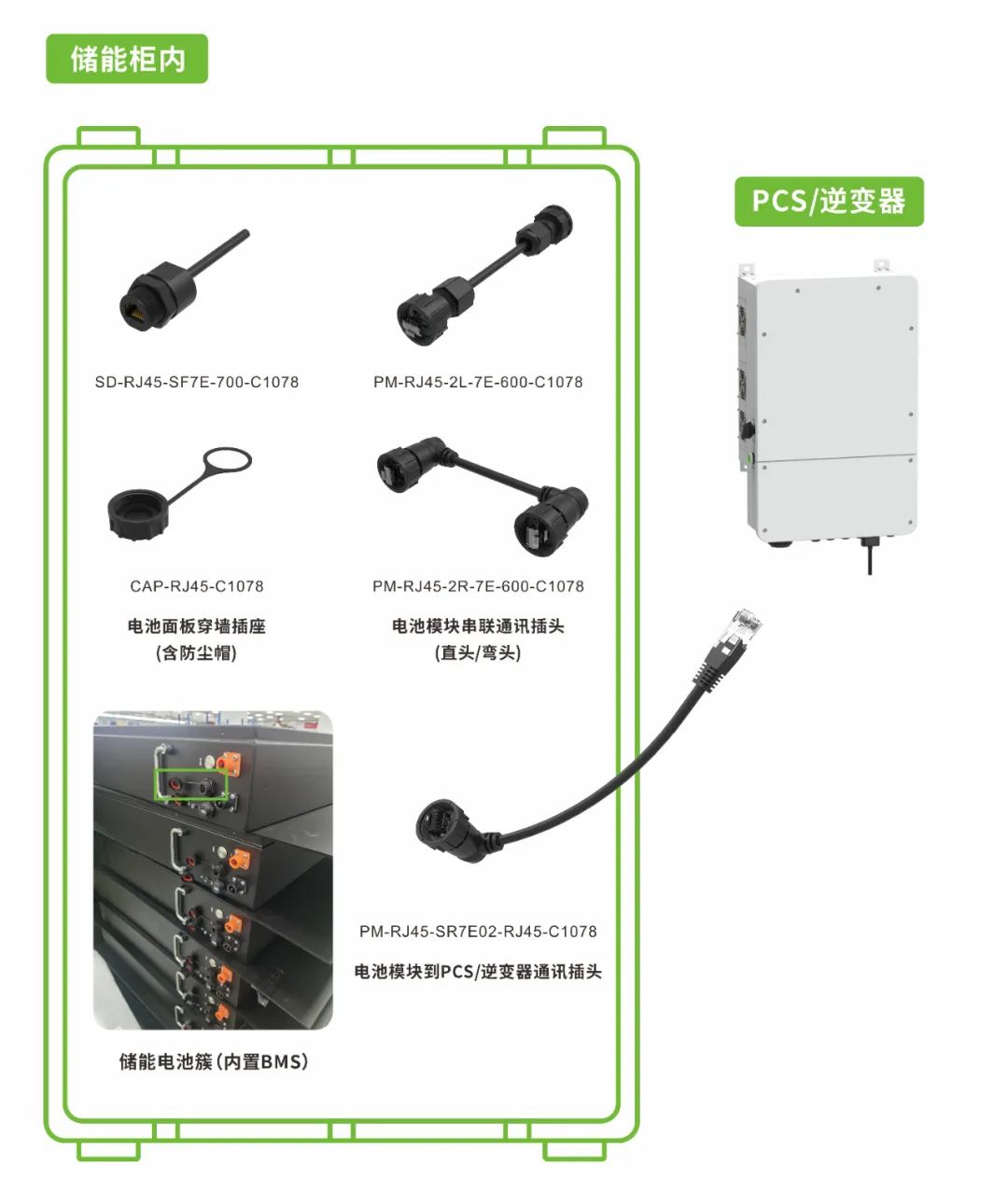 高速發展的光儲行業對長周期高質量通訊的要求日益增加,DEGSON高松推出的IP67高防護RJ45通訊連接器符合IEC 60603-7標準,安裝便捷,抗震耐用,助力光儲行業邁向百兆通訊大時代。