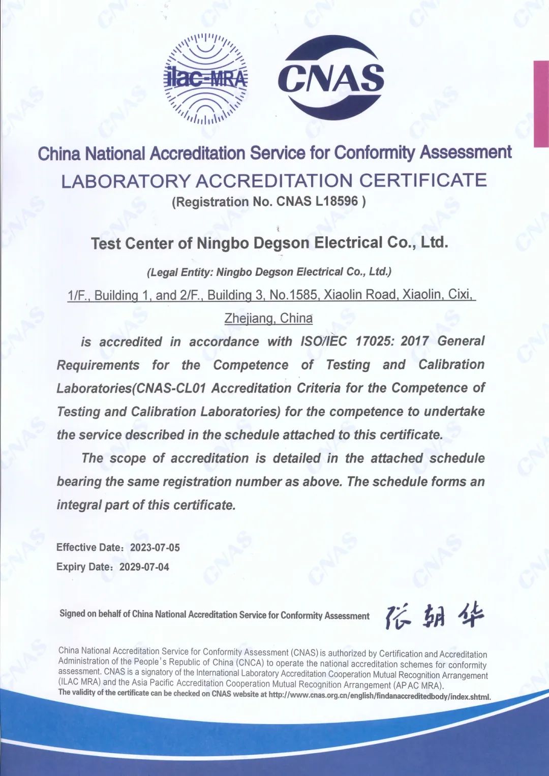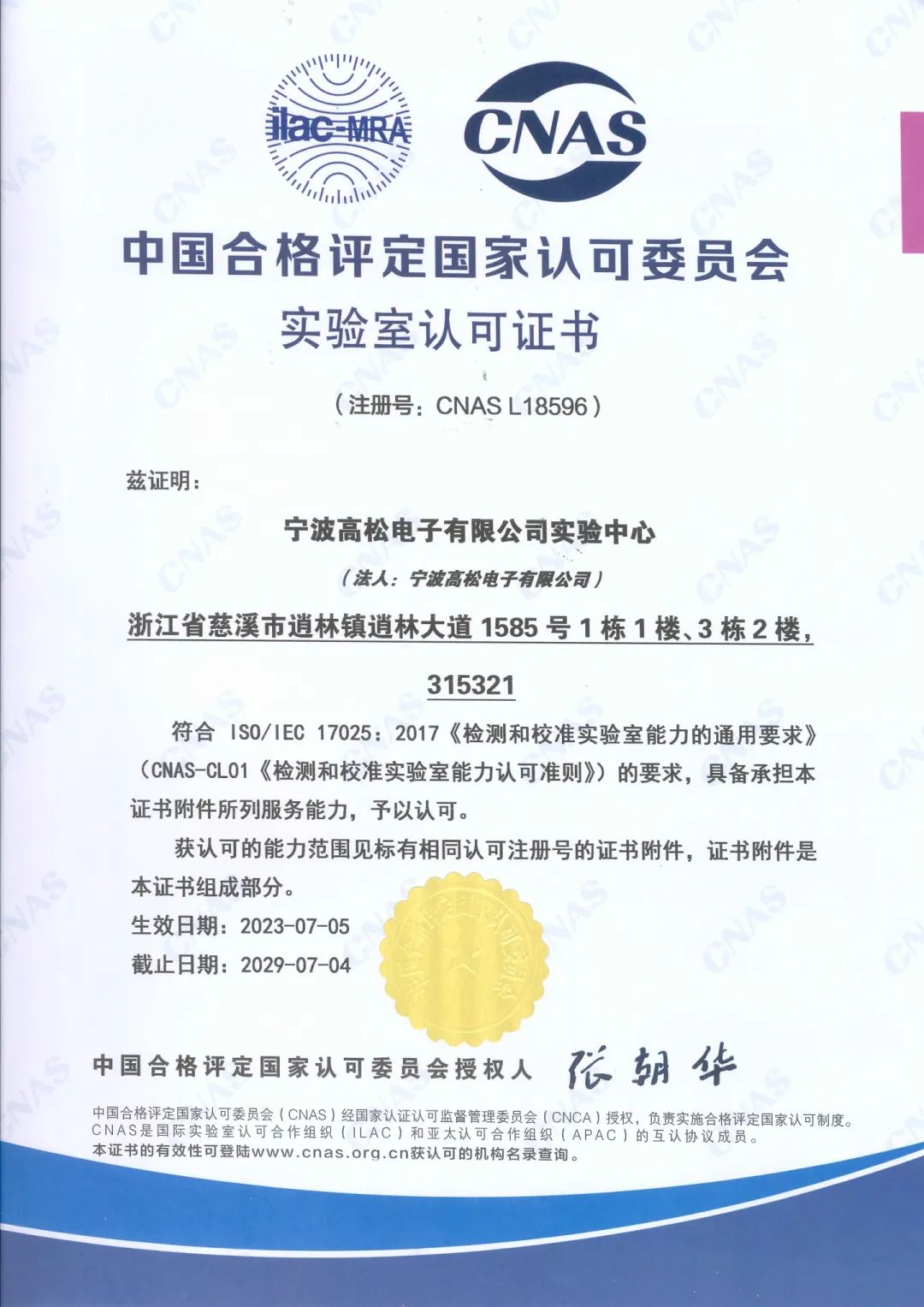 國家(國際)認可實驗室丨DEGSON高松實驗中心獲得CNAS實驗室認可證書!