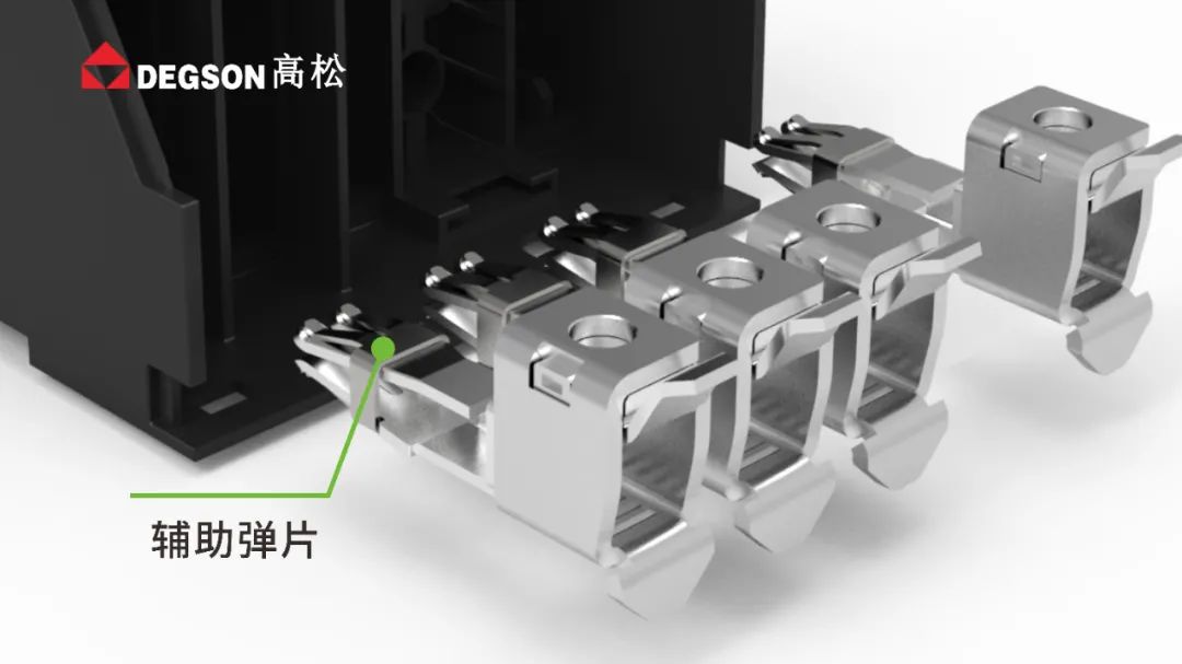 ●配有帶輔助彈片的四點接觸夾口結構,能有效提升連接長期的溫升穩定性及抗振性