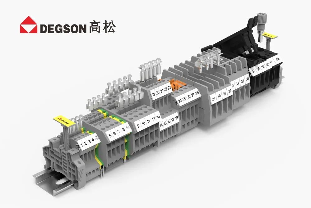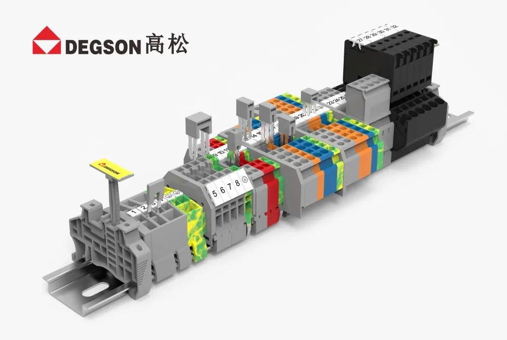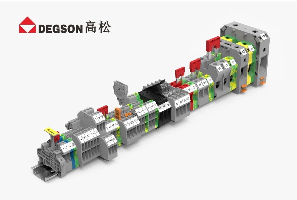 DEGSON高松的導軌端子經過嚴格的檢驗標準,例如:溫升、電壓降、沖擊、振動等測試,能適應各種惡劣的環境。型式試驗符合標準IEC60947和UL1059,為客戶生產安全保駕護航。