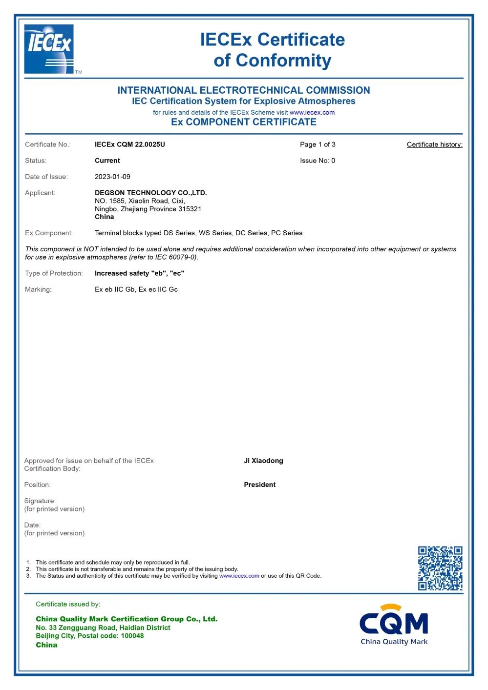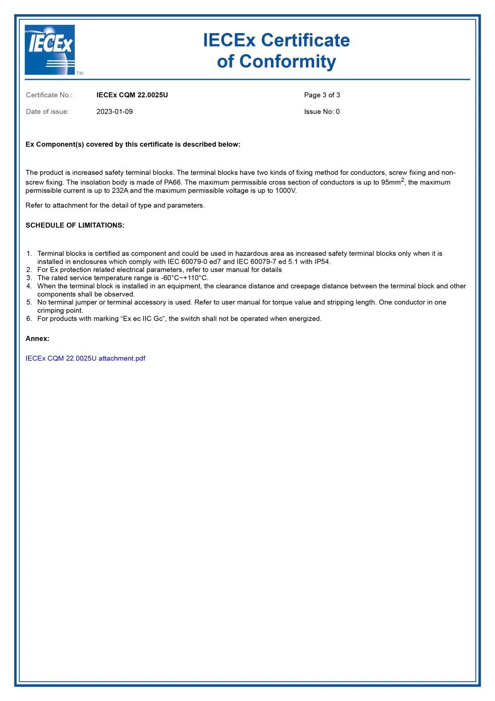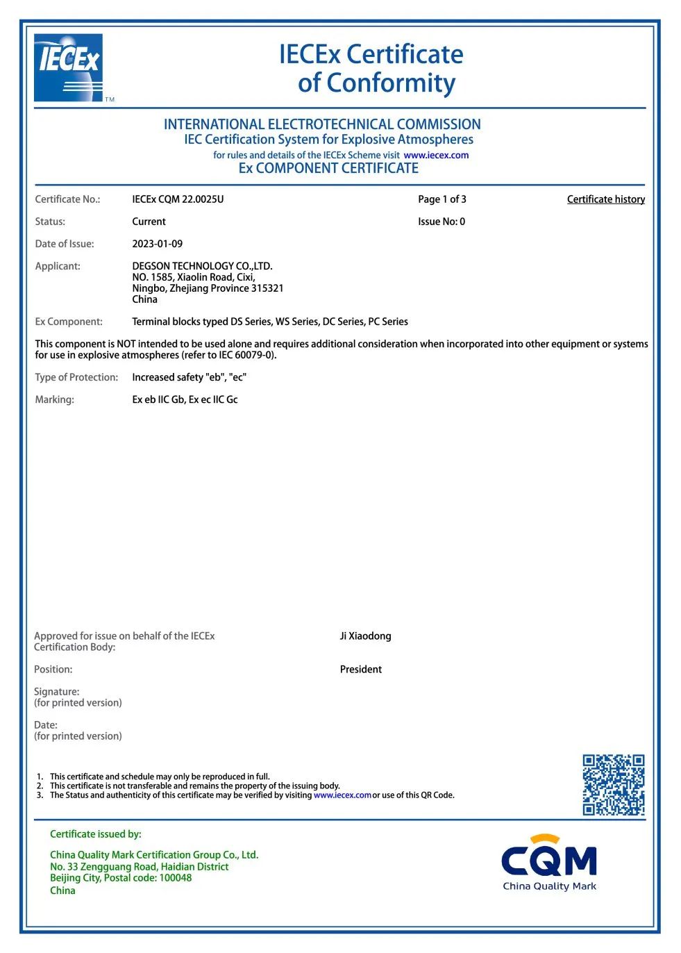 近期,寧波高松電子有限公司獲得了CQM權威認證機構頒發的國際電工委員會防爆電氣產品認證體系(IECEx)證書,將進一步增強導軌端子產品進軍國際工業物聯市場的綜合競爭力。