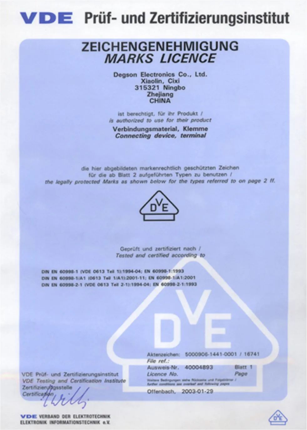 VDE 證書